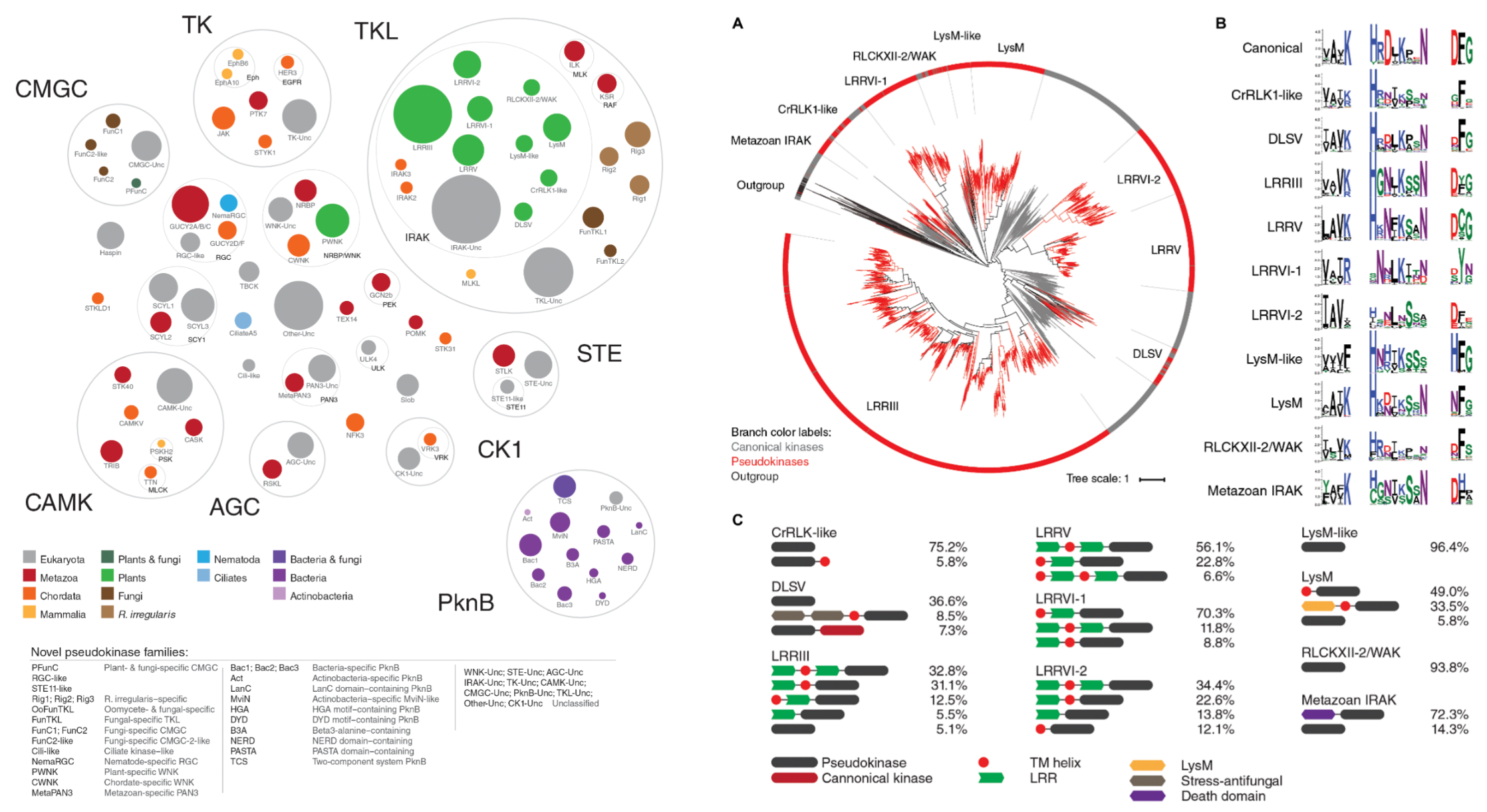 植物白细胞介素-1 受体相关激酶样假激酶 (interleukin-1 receptor-associated kinase (IRAK)-like pseudokinases):TKL 组的一部分,在植物中大量扩增