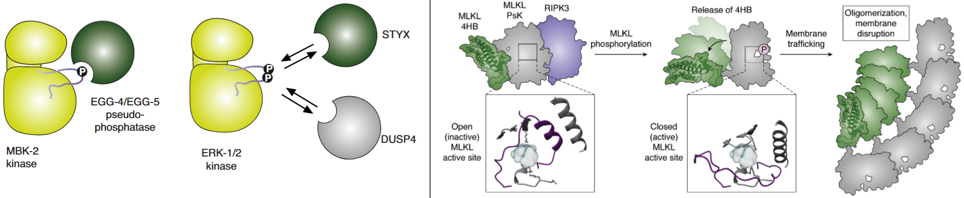 - 假磷酸酶 STYX 与传统磷酸酶DUSP4 竞争与 ERK1/2 激酶的结合——调控ERK1/2的活性